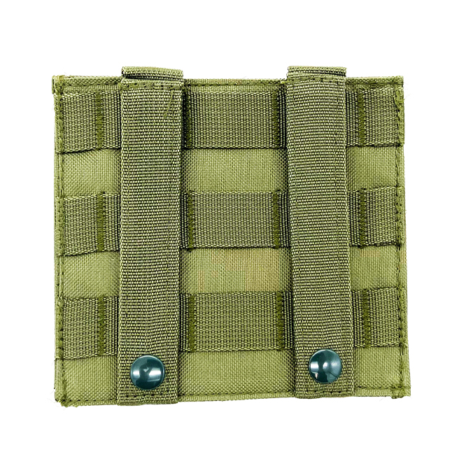 • Rear panel has two MOLLE straps with metal button straps to secure onto PALS/MOLLE webbing gear.