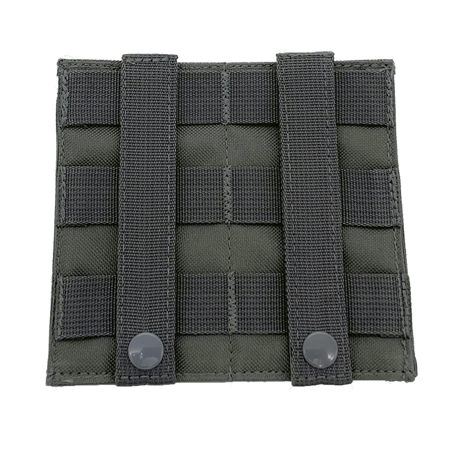 • Rear panel has two MOLLE straps with metal button straps to secure onto PALS/MOLLE webbing gear.