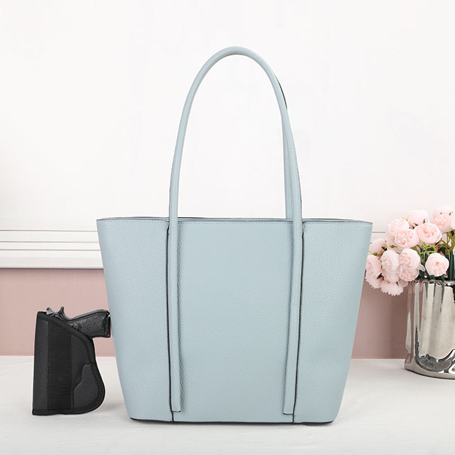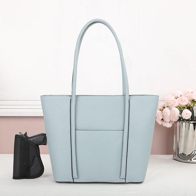 Purse – Blue The CCW holster is located in the main compartment of the purse. Universal holster included. Material : PU Dimensions :16“ W X 11.5“ H X 4.5“ D Weight : 1.3 lb