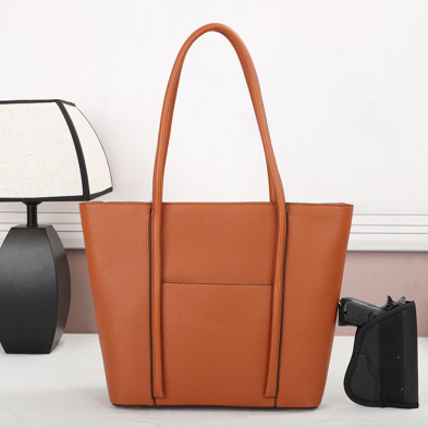 Purse – Brown The CCW holster is located in the main compartment of the purse. Universal holster included. Material : PU Dimensions :16“ W X 11.5“ H X 4.5“ D Weight : 1.3 lb