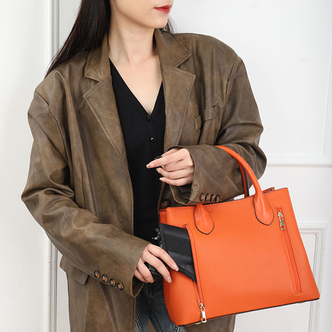 Purse – Orange The CCW compartment is located on the back side of the purse with two zippers on each side. Universal holster included. Material : PU Dimensions :12.7“ W X 10“ H X 5.5“ D Weight : 1.4 lb