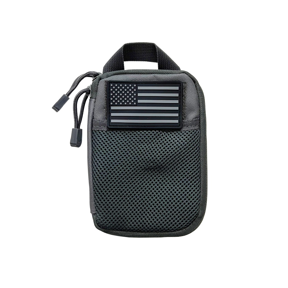 • MOLLE Utility pouch to hold and organize day to day items. Black pouch color with black and gray subdued US Flag.