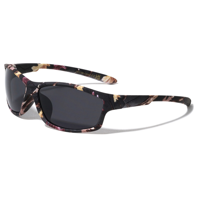 Camouflage Oval Sport Sunglasses UV400, UVA & UVB protection Case / Per Assorted Dozen Case dimension 6”x9”x3” Lens Width: 62mm Bridge: 16mm Temple: 130mm Lens Height: 38mm Total Length: 145mm Total Height: 42mm