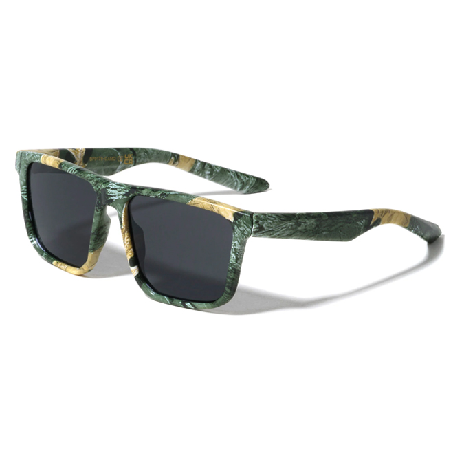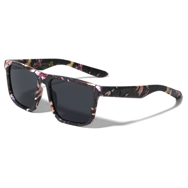 Camouflage Flat Top Classic Square Sport Sunglasses UV400, UVA & UVB protection Case / Per Assorted Dozen Case dimension 6”x9”x3” Lens Width: 57mm Bridge: 18mm Temple: 152mm Lens Height: 42mm Total Length: 150mm Total Height: 48mm