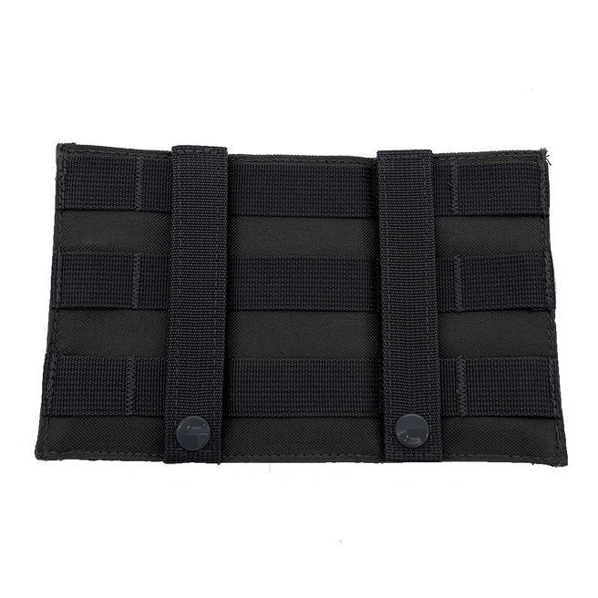 • Rear panel has two MOLLE straps with metal button straps to secure onto PALS/MOLLE webbing gear.