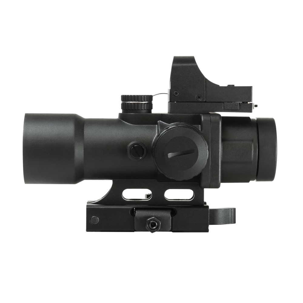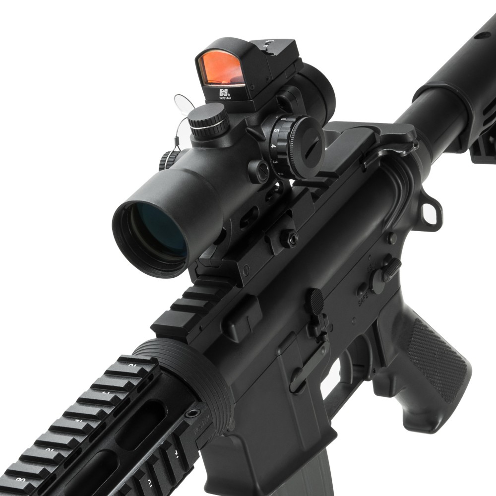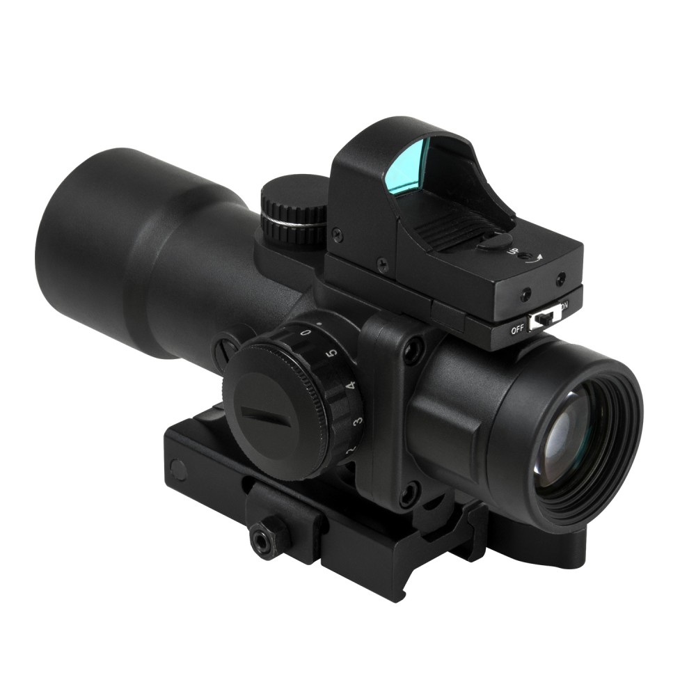 • Includes a low profile removeable NcSTAR® compatible Micro Dot Reflex Sight base mount on top of the scope, for mounting the included DDAB Micro Red Dot reflex optic.