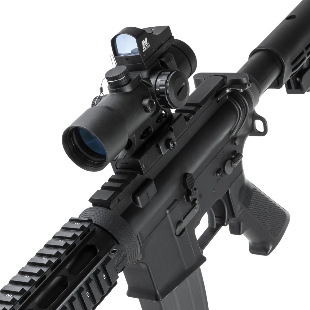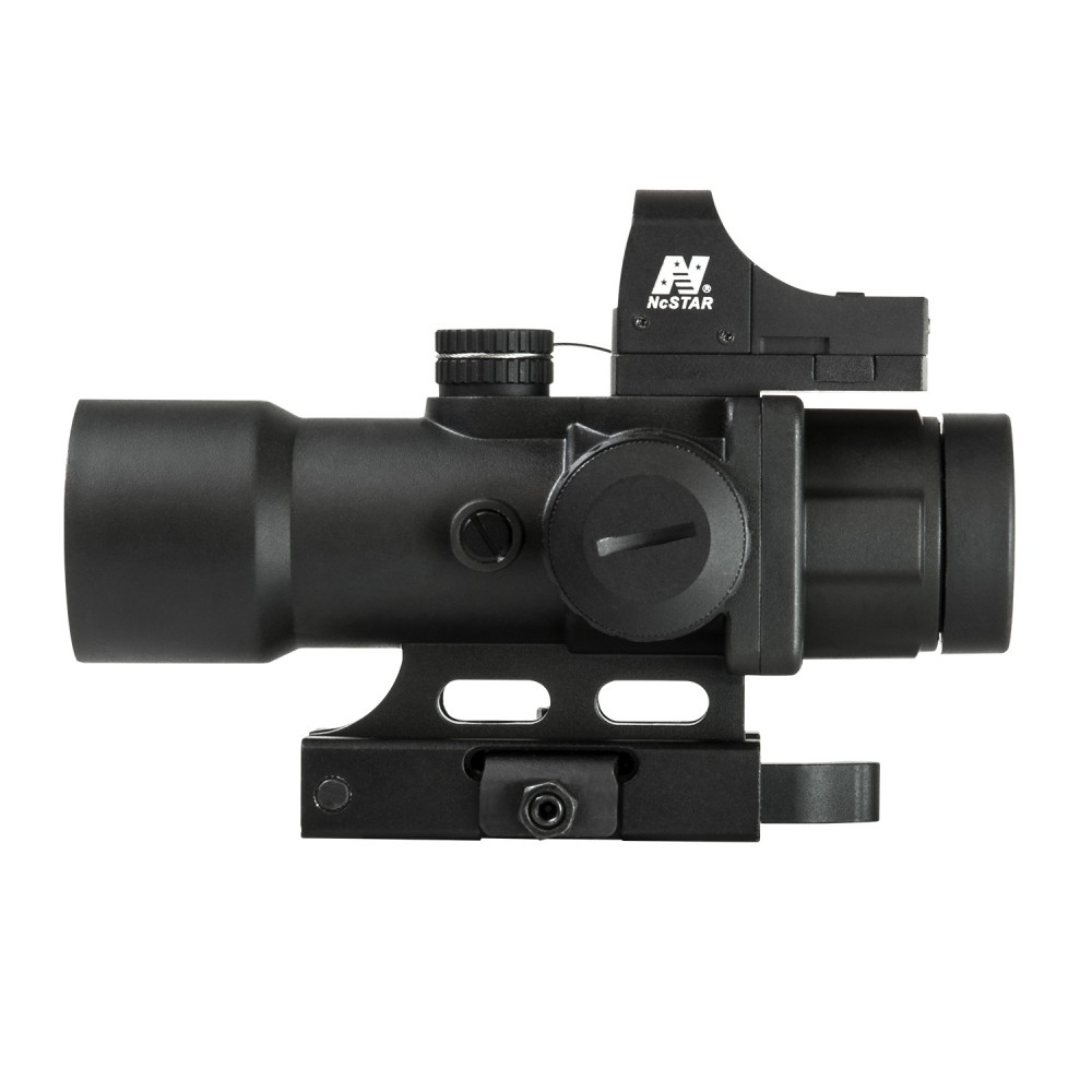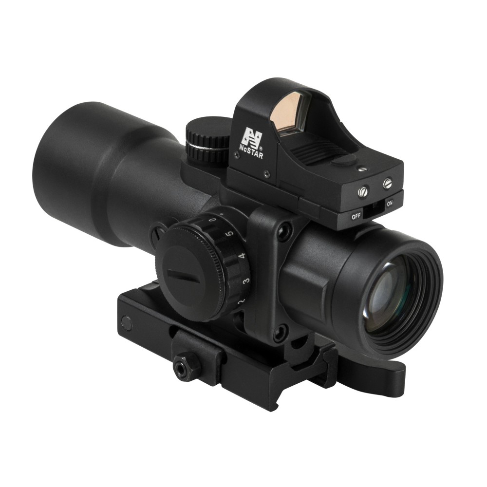• Includes a low profile removeable NcSTAR® compatible Micro Dot Reflex Sight base mount on top of the scope, for mounting the included DDAB Micro Green Dot reflex optic.