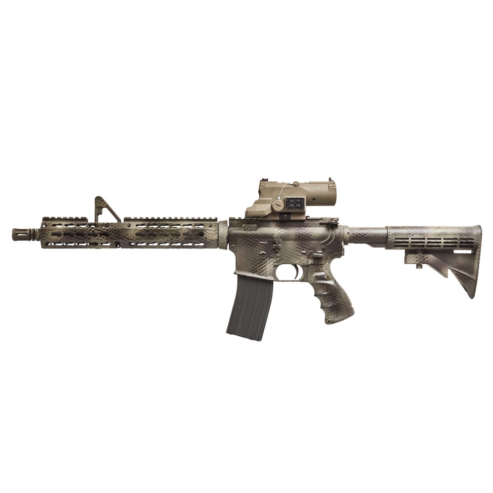 • ECO MOD2 4X Magnification 34mm scope with two forward mounted Green Laser pod and Red/White LED Navigation light pod.