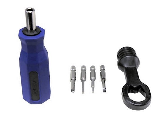 • 3/16” flat head screw driver tool bit for grip panel screws & bushings.