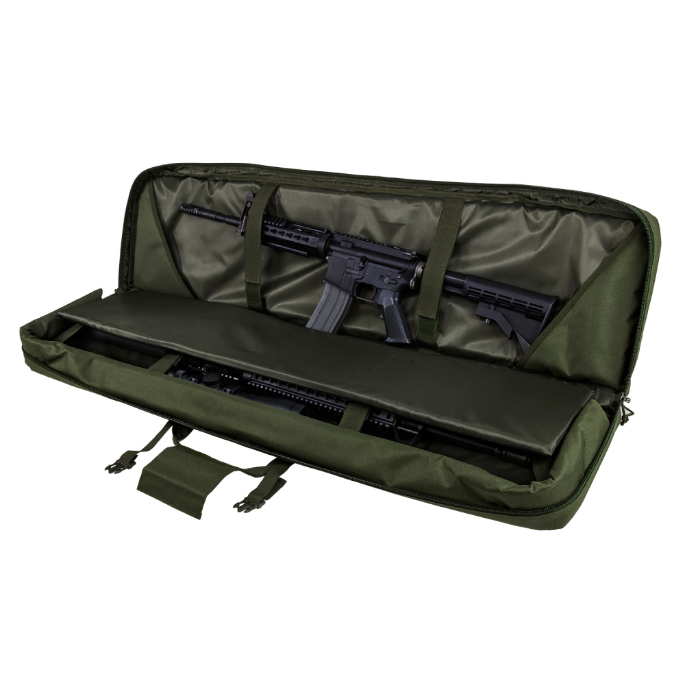 • A Deluxe Carbine Case that is fully padded for the safe transporting of 2 carbines and all of your other essential shooting gear. This Deluxe Case includes many different zippered compartments and pouches to keep your shooting gear organized and easy to get to.