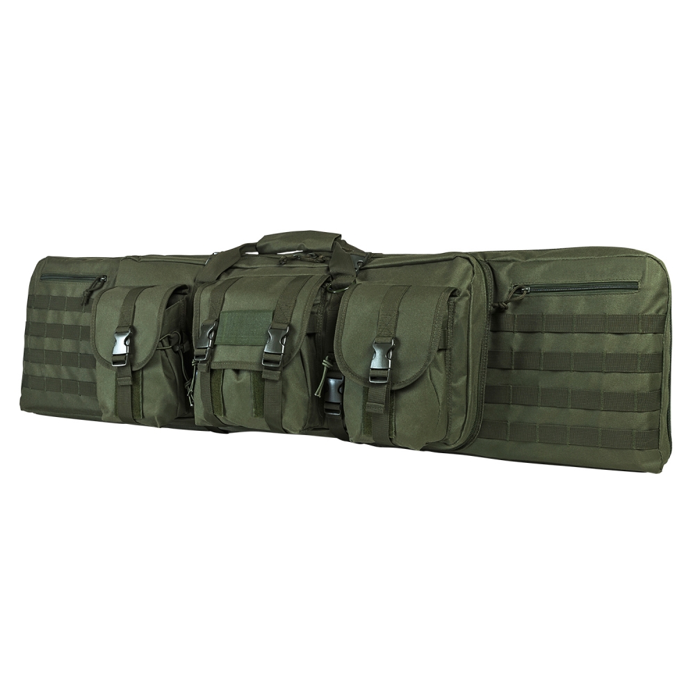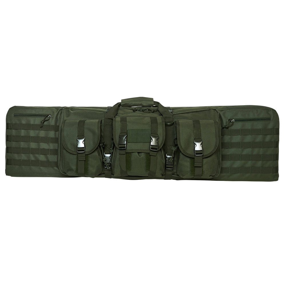 • The exterior of the Deluxe carbine case includes two zipper compartments along each side of the secondary compartments with MOLLE webbing for attaching other MOLLE compatible gear to the outside of the case.