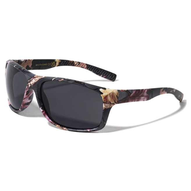 Camouflage Grip Temple Square Sport Sunglasses UV400, UVA & UVB protection Case / Per Assorted Dozen Case dimension 6”x9”x3” Lens Width: 64mm Bridge: 18mm Temple: 134mm Lens Height: 43mm Total Length: 140mm Total Height: 48mm