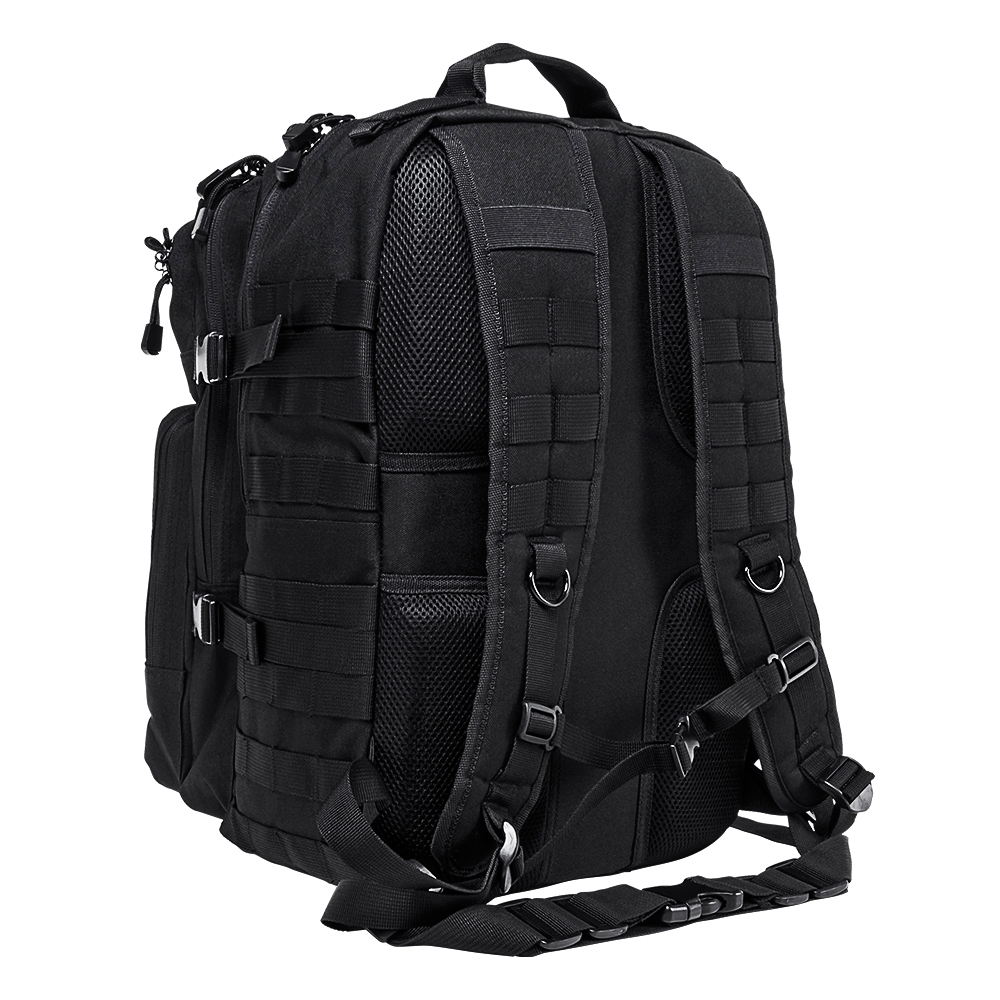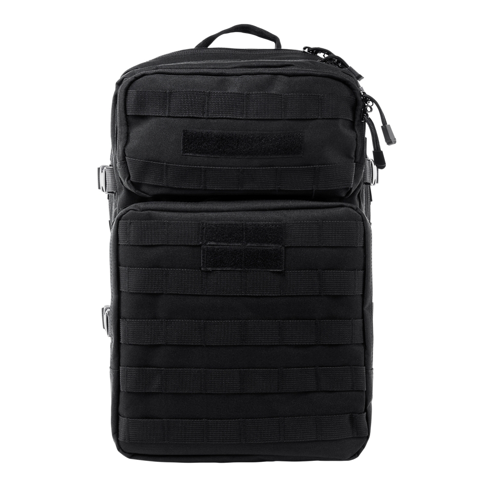 • MOLLE compatible webbing on the front & bottom pockets, shoulder straps, and the sides of the backpack.