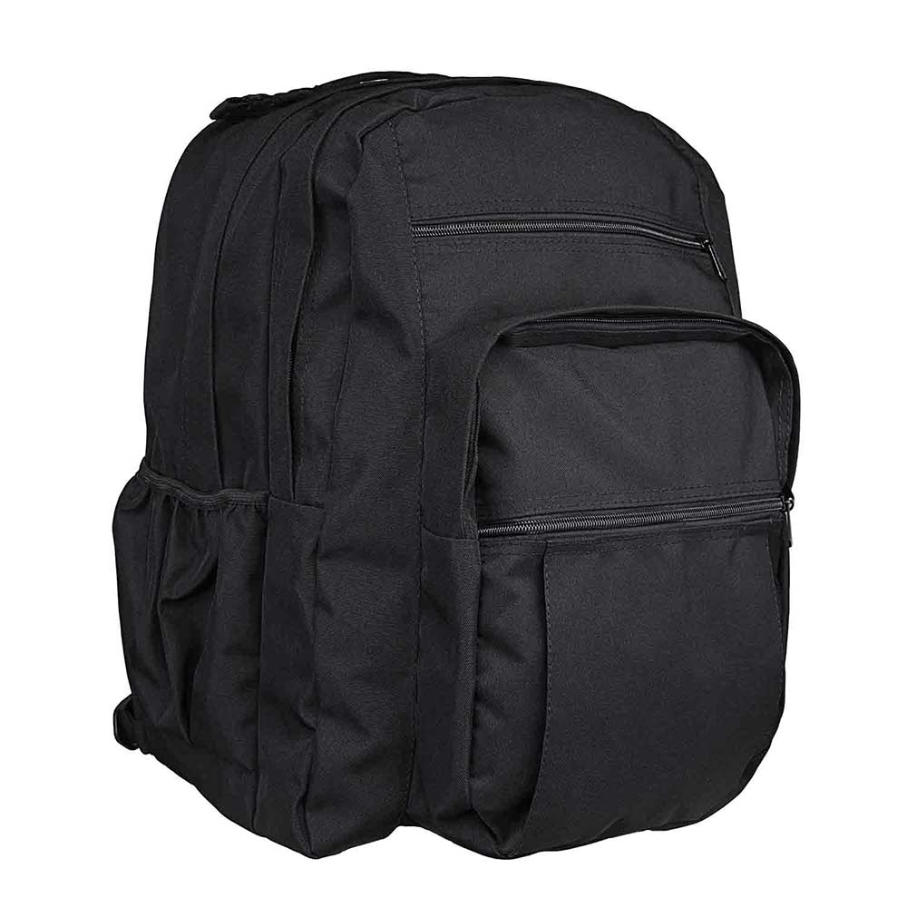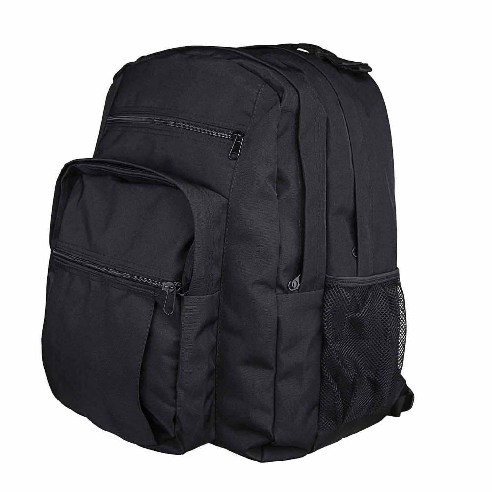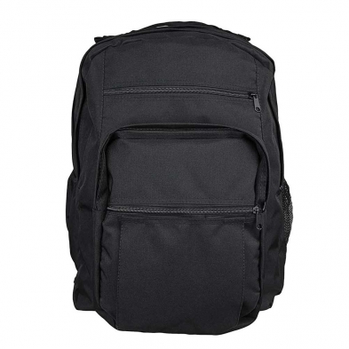 • Day backpack has several compartments to carry and organize all your essential gear. The Day backpack has two main large zippered compartments, an outside zippered compartment, two outside zippered pockets, a side mesh pocket, and a side pocket for holding a water bottle or a sports drink. Many of the compartments have internal dividers, smaller pockets, and a plastic hook for your securing your keys; all this to help with organizing your gear, so that you may get to them easier. The perfect Day backpack for work, school, the gym, and for other recreational activities.