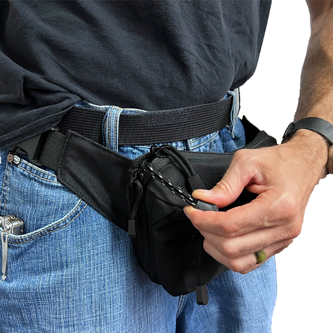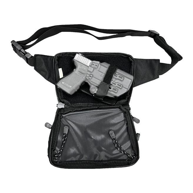 • Concealed carry fanny pack has three zipper compartments. One large clamshell pouch for concealing your pistol and two other pouches for your everyday carry items.