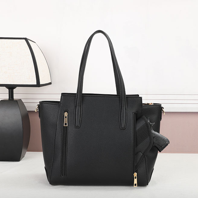 Purse – Black The CCW compartment is located on the back side of the purse with two zippers on each side. Universal holster included. Material : PU Dimensions :11.3“ W X 11.5“ H X 4.5“ D Weight : 1.3 lb
