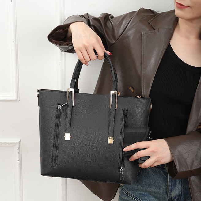 Purse – Black The CCW compartment is located on the back side of the purse with two zippers on each side. Universal holster included. Material : PU Dimensions :14“ W X 10.5“ H X 4“ D Weight : 1.4 lb