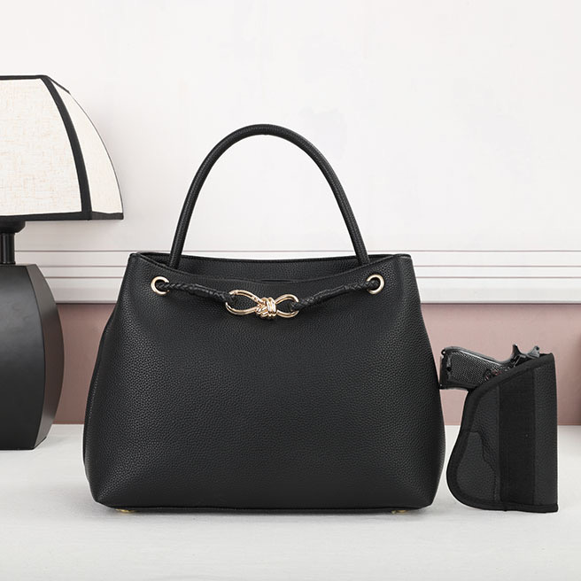 Purse – Black The CCW compartment is located on the back side of the purse with two zippers on each side. Universal holster included. Material : PU Dimensions :12.5" W X 10" H X 5" D Weight : 1.3 lb