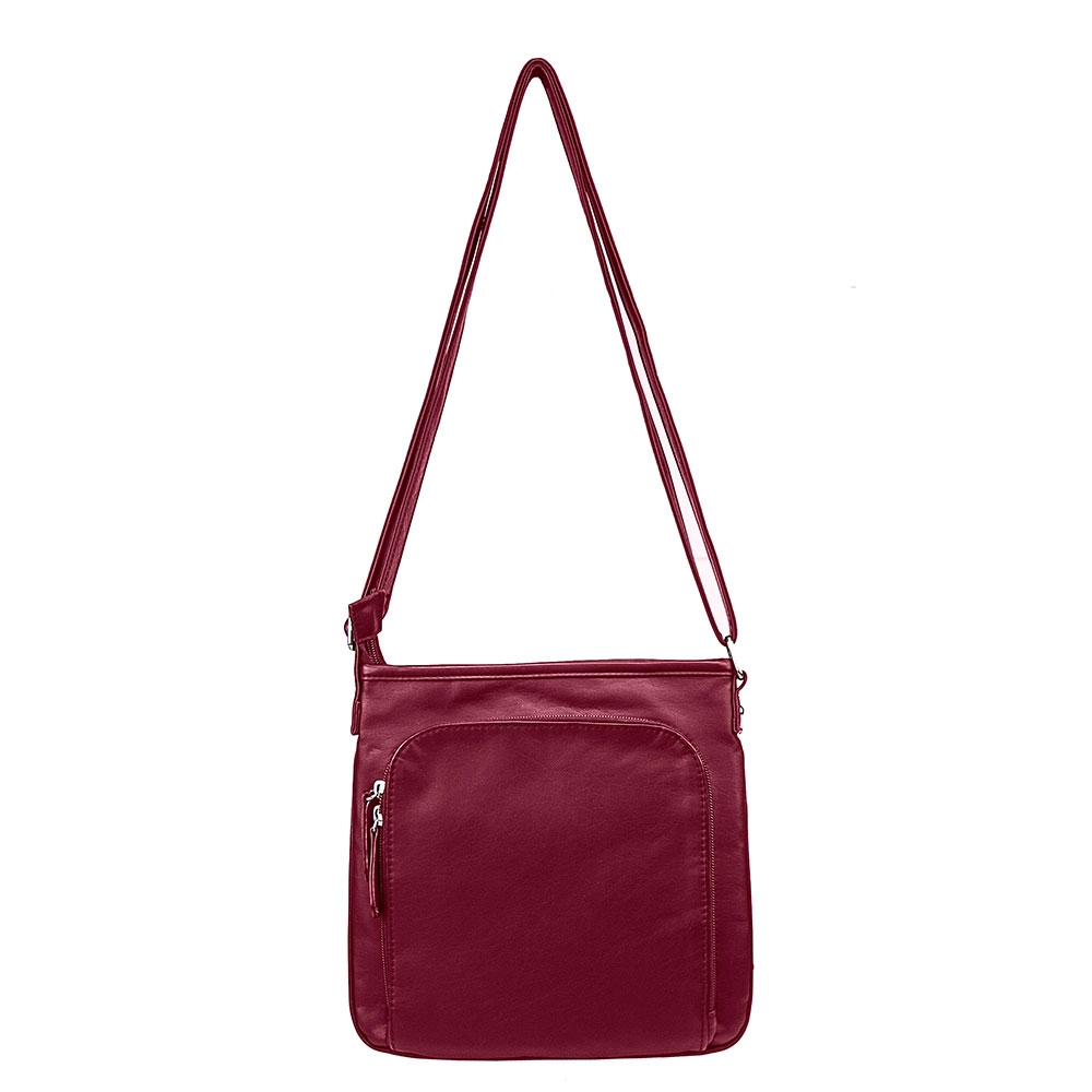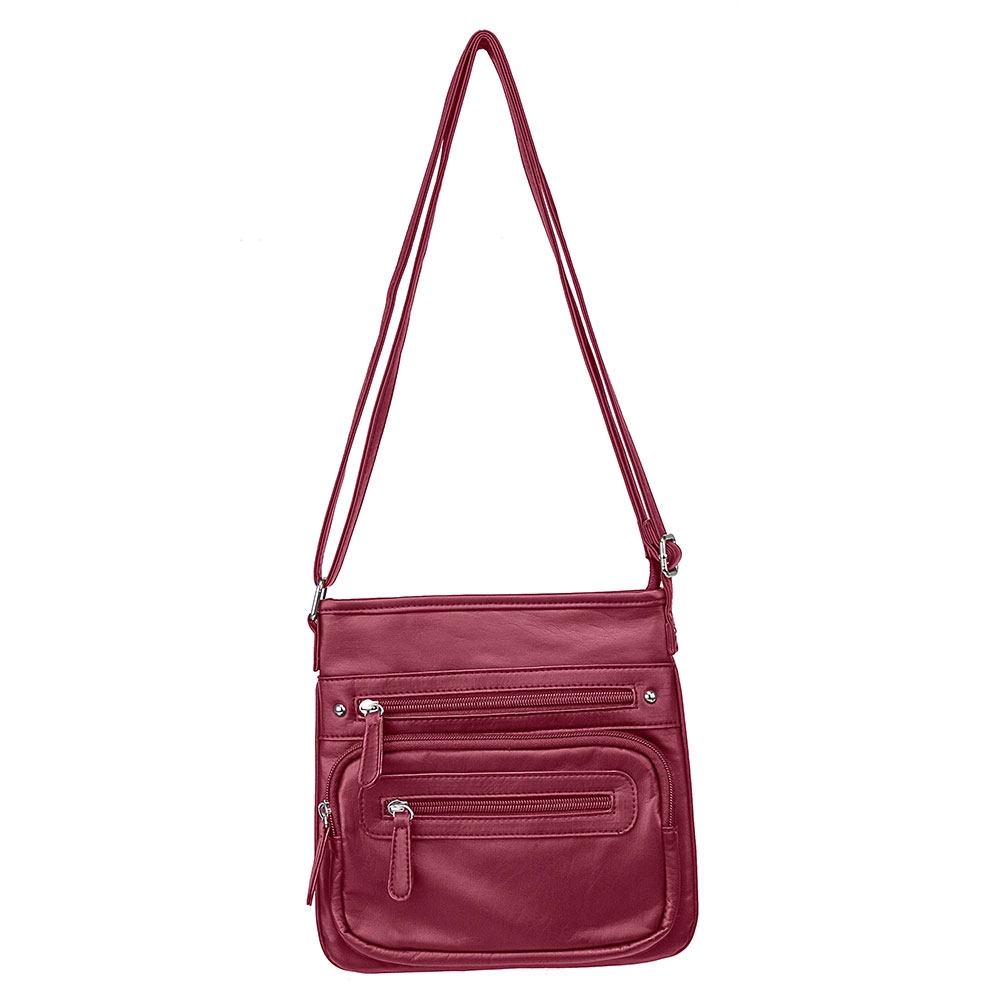 • Faux leather Small Messenger Cross Body Bag with three zippered compartments and pockets on the front side.