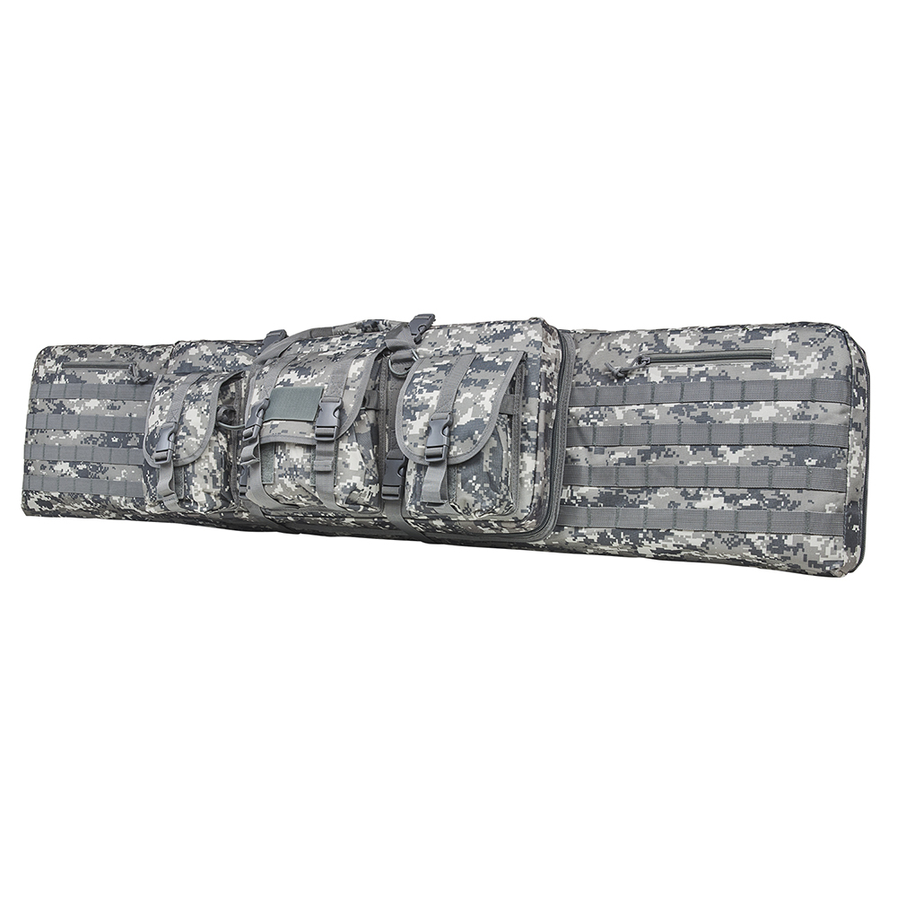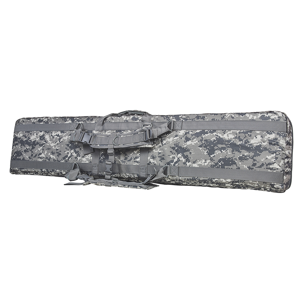 52” Double Carbine Case is constructed of heavy duty PVC material and the main compartment is fully padded on all side with thick ½” closed cell foam padding. The main compartment has Heavy Duty zippers with metal zipper pulls that can be locked with a small pad lock (lock not included).