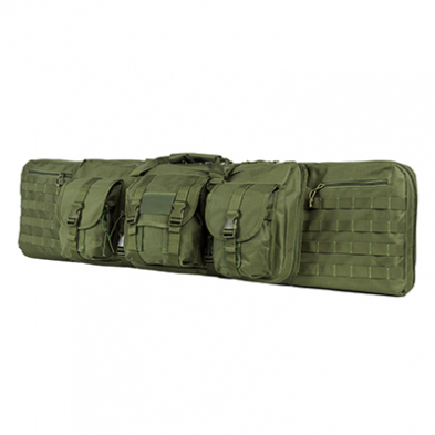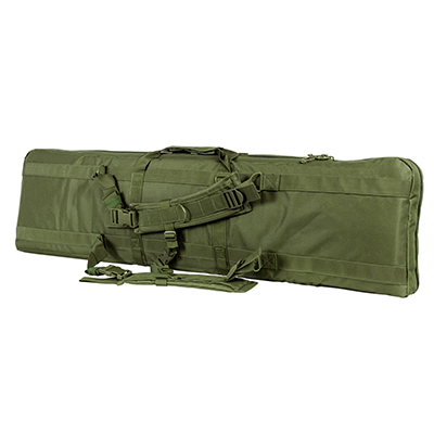 • 52” Double Carbine Case is constructed of heavy duty PVC material and the main compartment is fully padded on all side with thick ½” closed cell foam padding. The main compartment has Heavy Duty zippers with metal zipper pulls that can be locked with a small pad lock (lock not included).