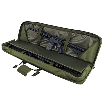 • A Deluxe Carbine Case that is fully padded for the safe transporting of 2 rifles and all of your other essential shooting gear. This Deluxe Case includes many different zippered compartments and pouches to keep your shooting gear organized and easy to get to.