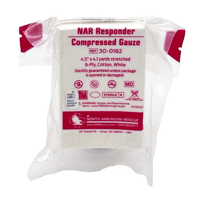 • Kit includes: 1x C-A-T Tourniquet, 1X NAR Responder Compressed Gauze. 1X Emergency Trauma Dressing 4in Mini, 1X HyFin Vent Compact Chest Seal – Twin Pk, 1x Responder Gloves – Blue LG