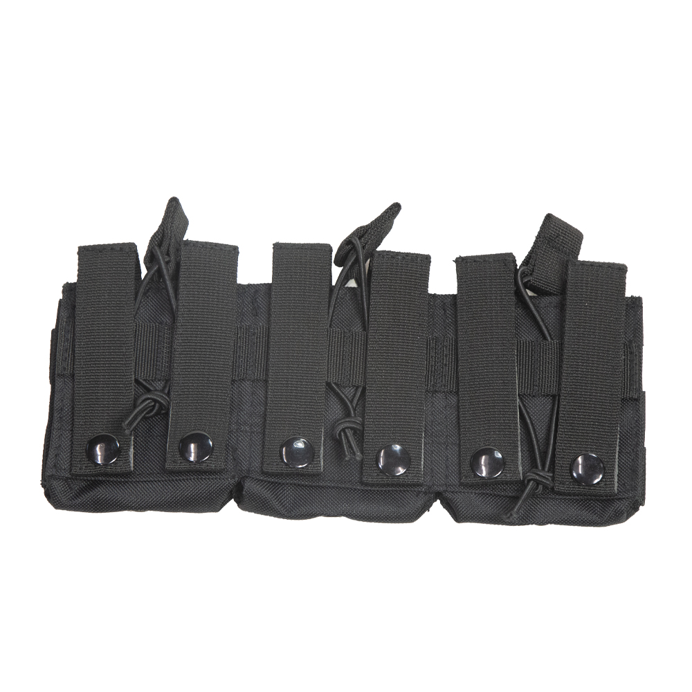 - Rear panel has six MOLLE straps with metal button snaps to secure onto PALS/MOLLE webbing gear.
