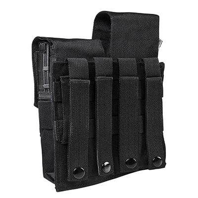 • The AR15/ M4/ AK Quad Magazine pouch is able to carry four AR/AK type box magazines. The quad magazine pouch is able to carry up to four .223/ 5.56X45/ 7.62X39/ 5.45X39 caliber AR15/ M4/ AK box magazines. There are two magazine pouches side by side, each capable of holding two magazines each.