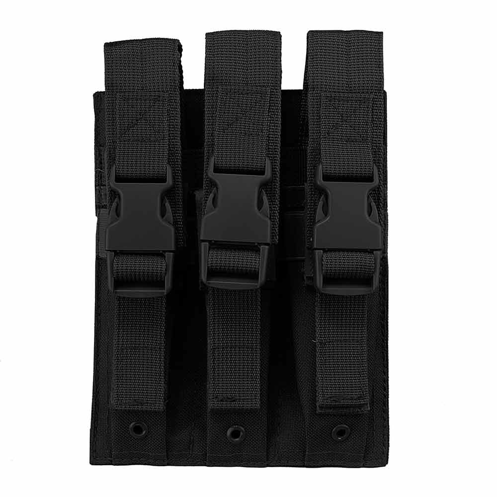 • Triple magazine pouch will fit extended capacity magazines from handguns, pistol caliber carbines, and subguns.