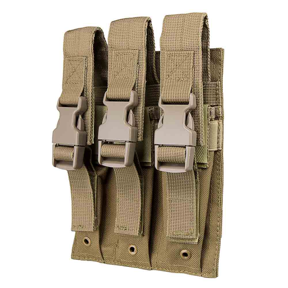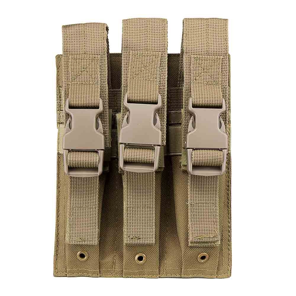 • Triple magazine pouch will fit extended capacity magazines from handguns, pistol caliber carbines, and subguns.