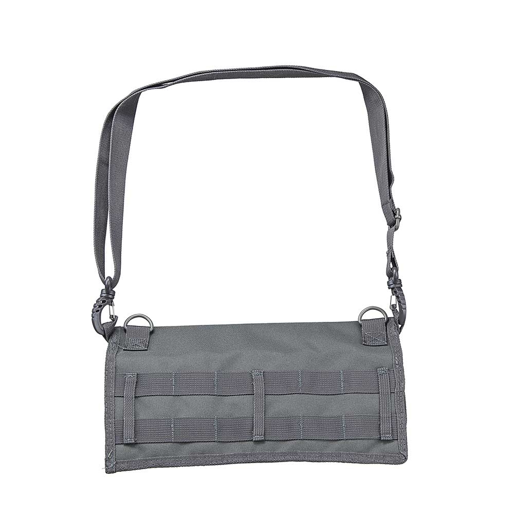 • Backside of pouch includes MOLLE compatible webbing, three 2” wide belt loops, and 2 metal D-rings.