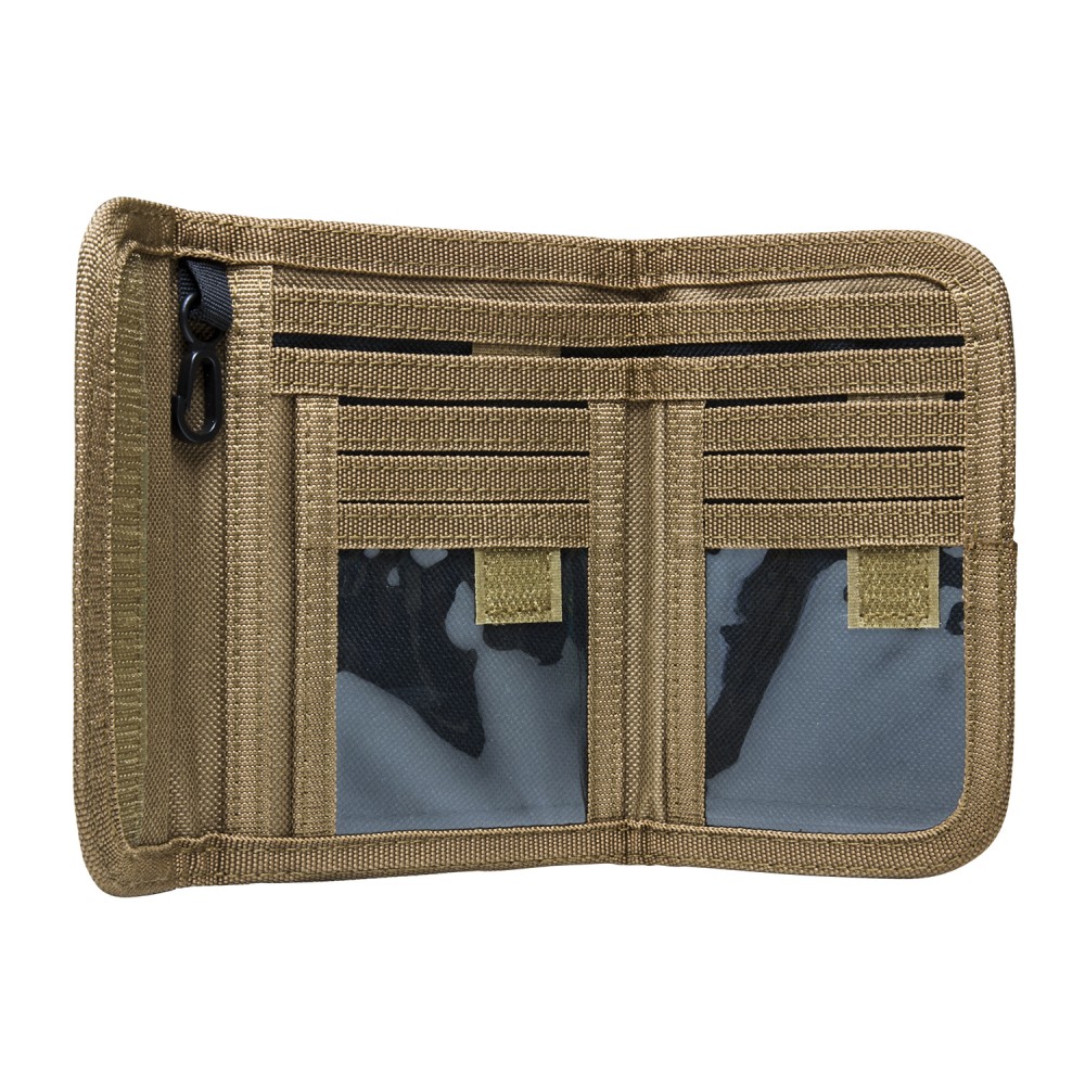 • The wallet features two internal hook and loop straps to secure the: ID, credit/membership card pockets, and the center paper currency/document compartment. Hook and loop straps can be tucked away if the feature is not used. The wallet also features an internal plastic clip for keeping a spare: house, car, and locker keys.