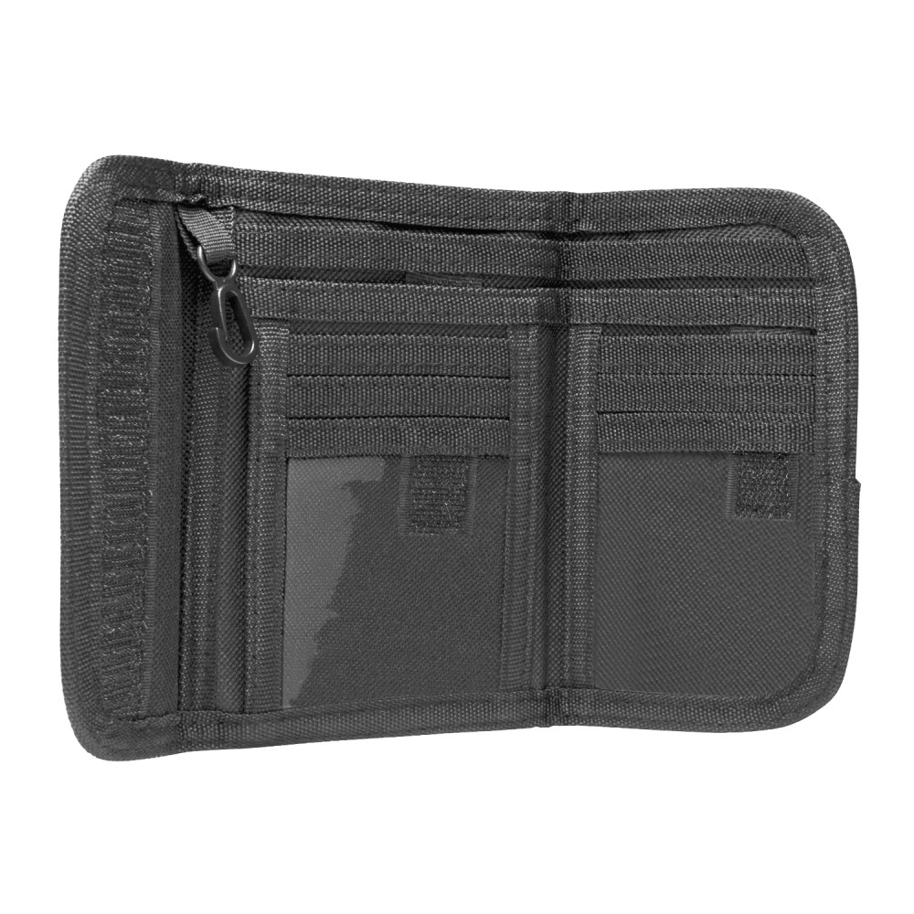 • The wallet features two internal hook and loop straps to secure the: ID, credit/membership card pockets, and the center paper currency/document compartment. Hook and loop straps can be tucked away if the feature is not used. The wallet also features an internal plastic clip for keeping a spare: house, car, and locker keys.