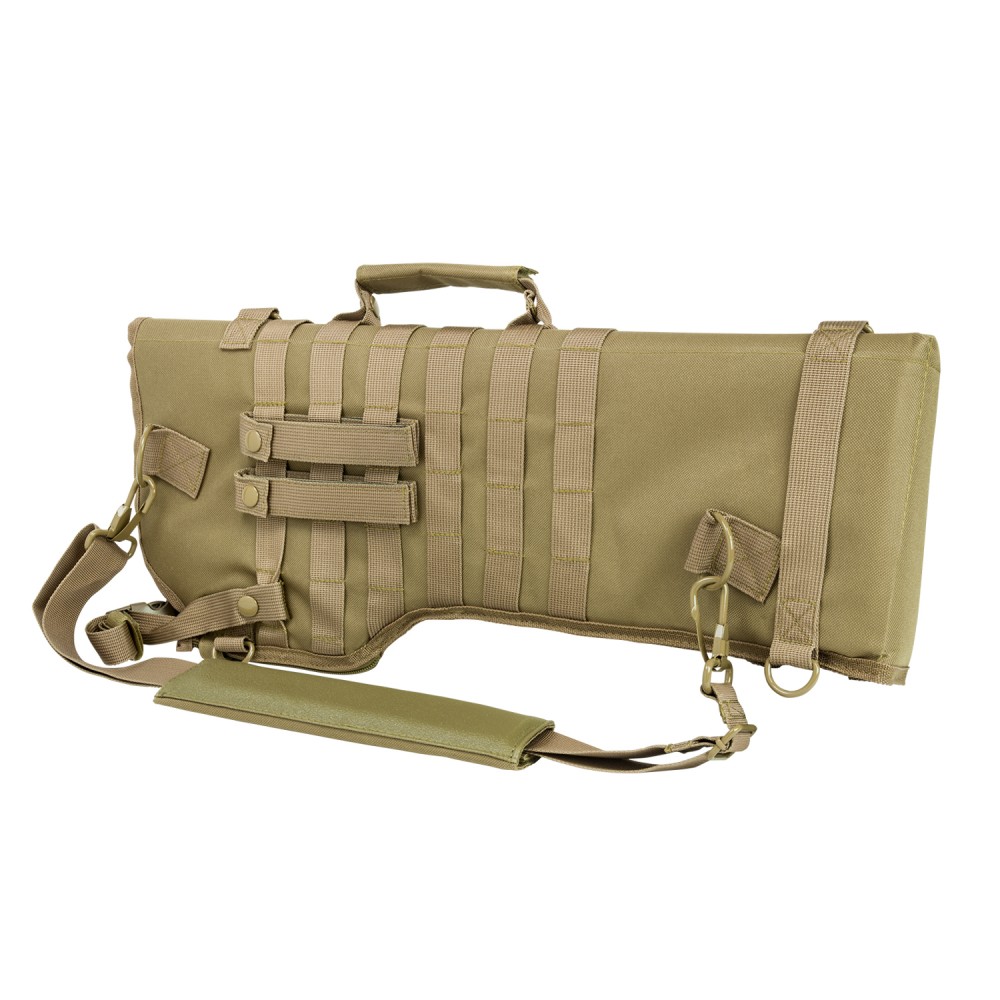 • Tactical Rifle Scabbard is designed for the an easy, comfortable, and secure way of carrying a Rifle/Carbine over the shoulder or modular mounting onto MOLLE compatible gear, with the Rifle/Carbine being readily accessible