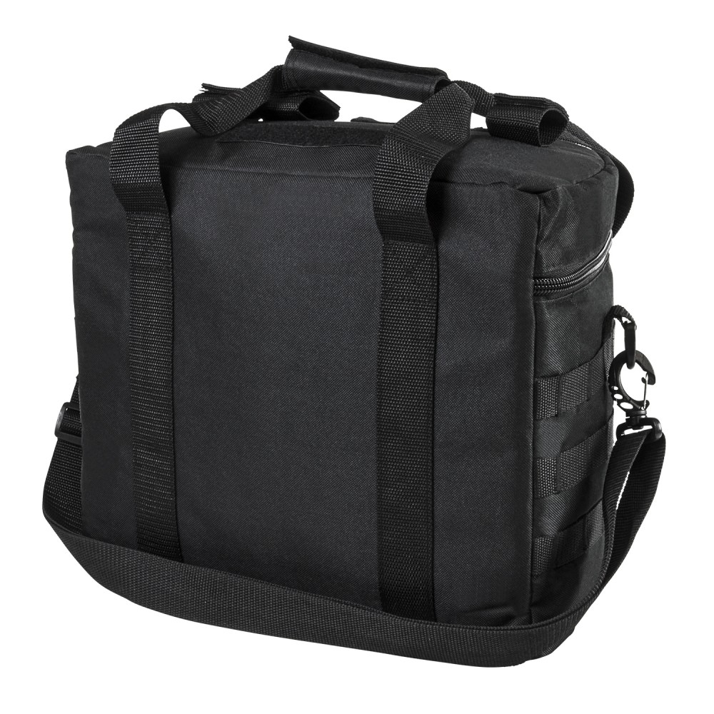 • Carry straps, adjustable shoulder strap with spring loaded clasps, three web straps on the lid for attaching a baton, ID pocket, and a 1.5" X 6" loop fastener for name/unit patch.
