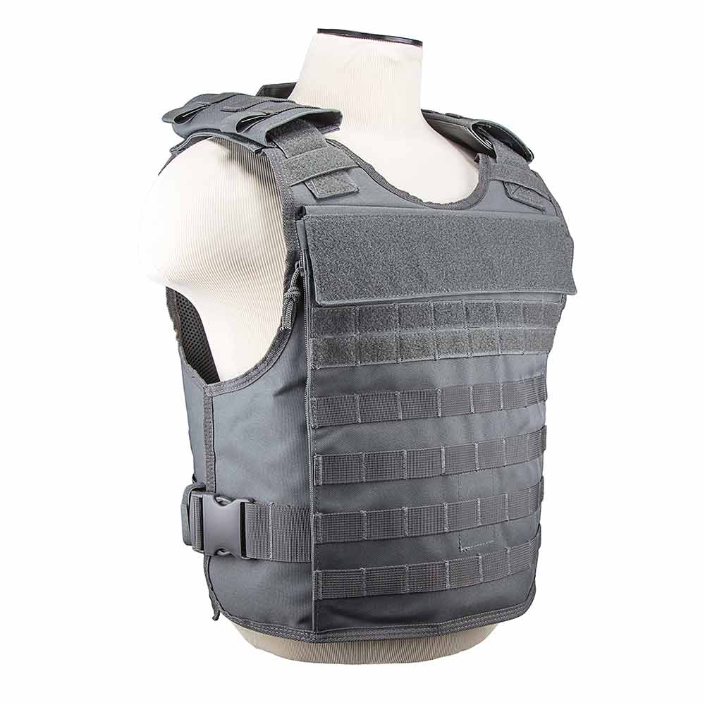 • Plate Carrier with easy to access external hard plate pockets. This plate carrier has breathable mesh inner pockets for soft body armor panels. The inner pockets feature a pass-through shoulder opening for soft body armor with adjustable shoulder straps to pass through from the front panel to the back panel. On the outside of the front and back panels are easy to access external hard body plate armor pockets. One side of the external pockets has a full length heavy duty zipper and a top flap with hook and loop fasteners. This allows the wearer to quickly and easily insert Level III or Level IV hard plates, when the situation requires it, to quickly upgrade their protection level. The external pockets will accommodate a pair of standard 10” X 12” hard plates or up to a pair of 11” X 14” hard plates.